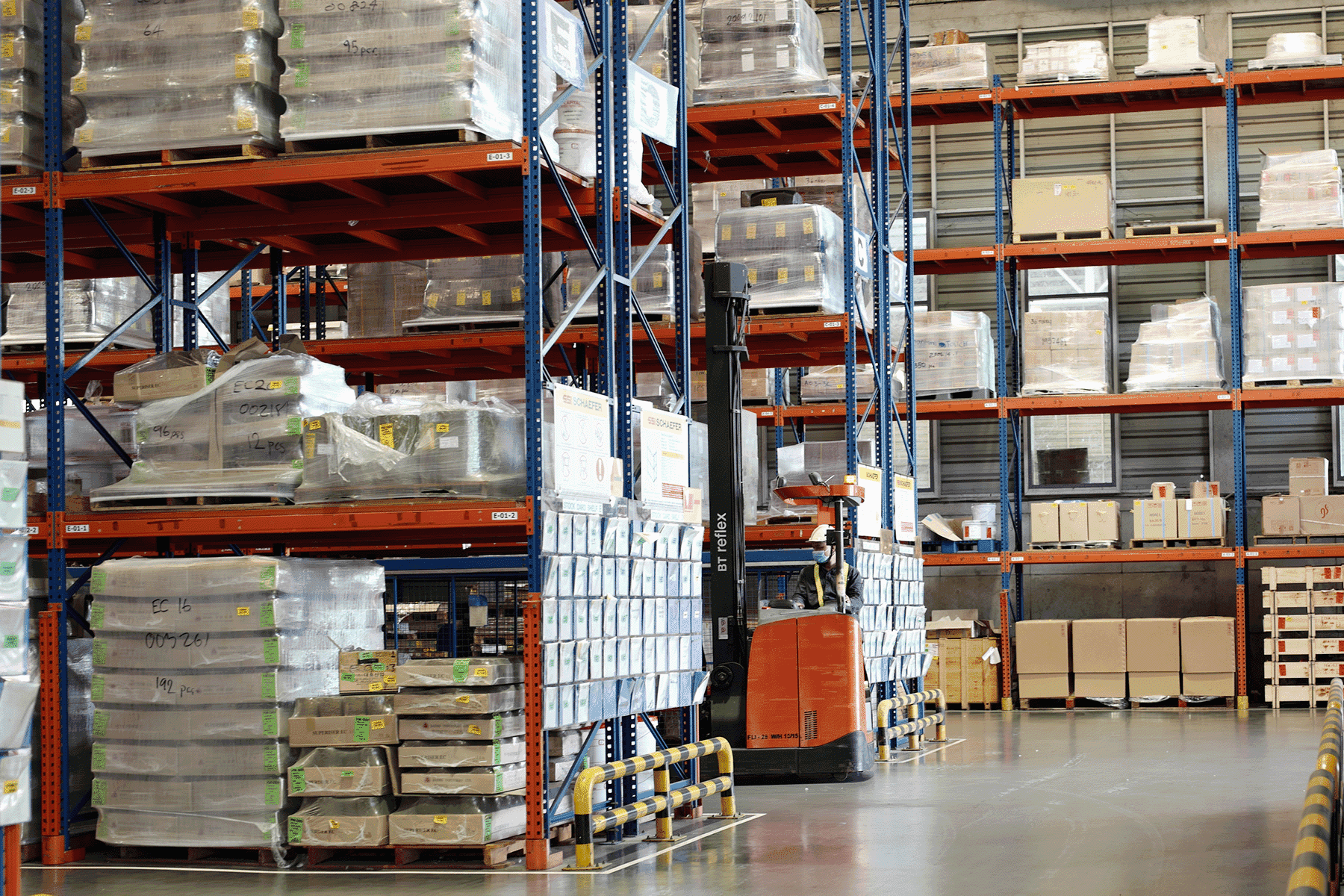 Flow racks with rollers have been installed across all our warehouses, maximizing storage space while minimizing the amount of floor space required. The flow racks are designed to take advantage of vertical space, allowing products to be stored in multiple tiers. Moreover, as items seamlessly move to the front of the racks, our staff can effortlessly access them without the need to reach or stretch, significantly lowering the risk of injuries.